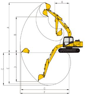 Operating weight includes basic machine (with boom 4.6m, arm 2.5m, and bucket 0.55m3) |