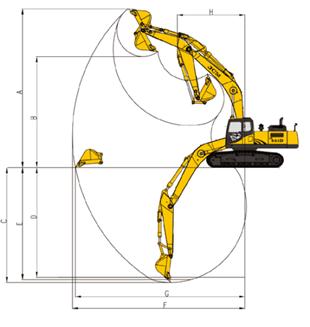 Operating weight includes basic machine (with boom 6.47m, arm 3.186m, and bucket 1.4m3) |